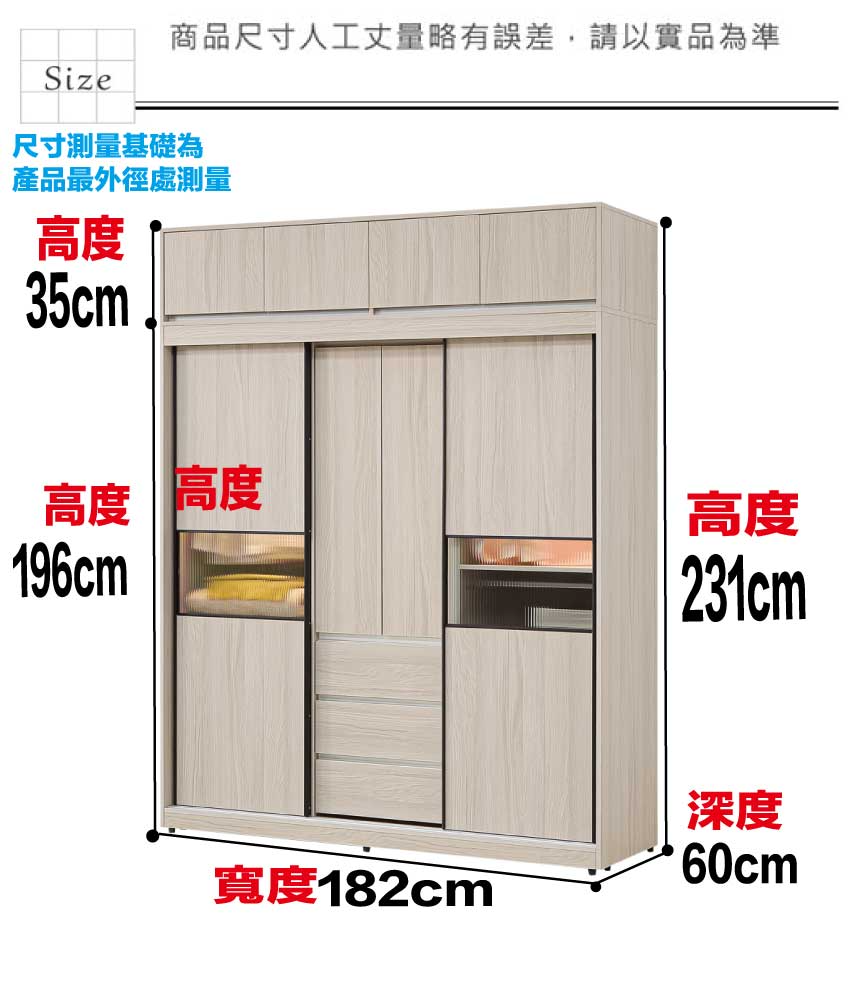 - 尺寸:(寬)182x(深)60x(高)231/公分