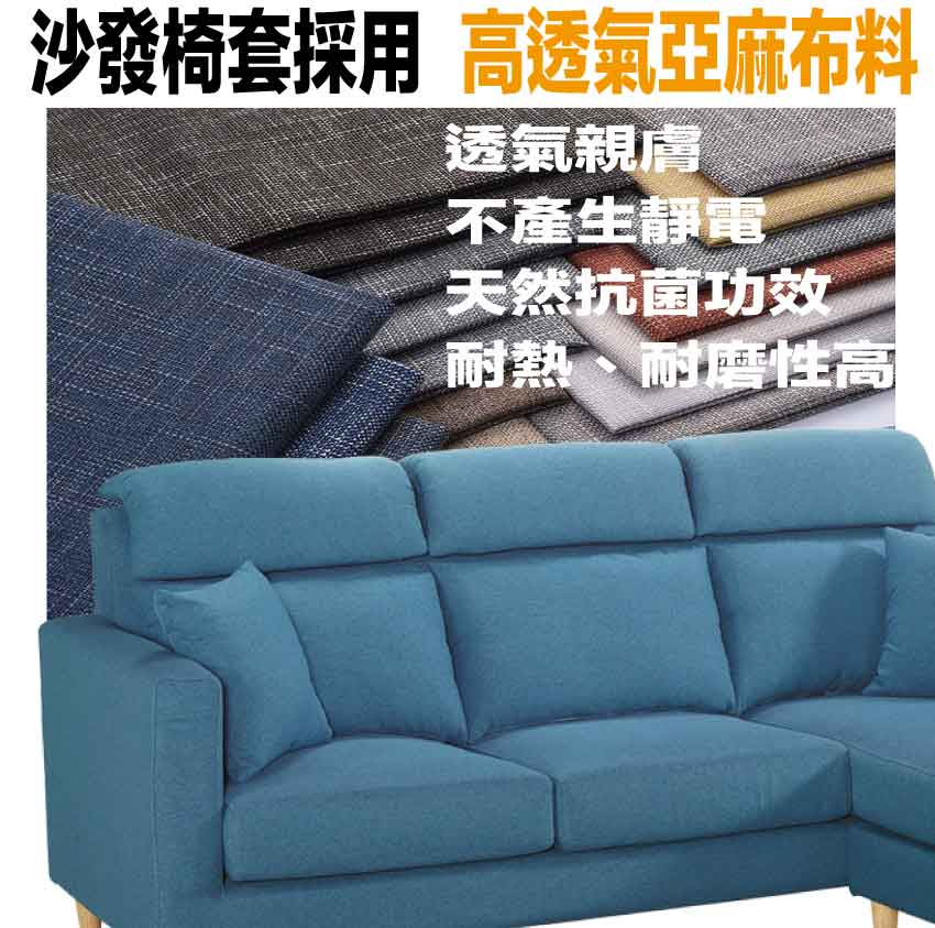 採用內部實木框架+防潮實木腳座+透氣亞麻布+高回彈力加厚泡棉等安心材質製造