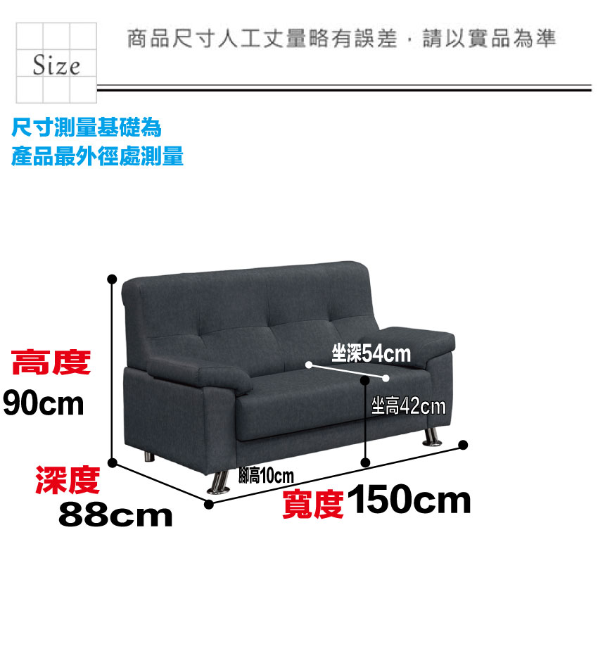 - 2人沙發椅尺寸:(寬)150x(深)88x(高)90/公分