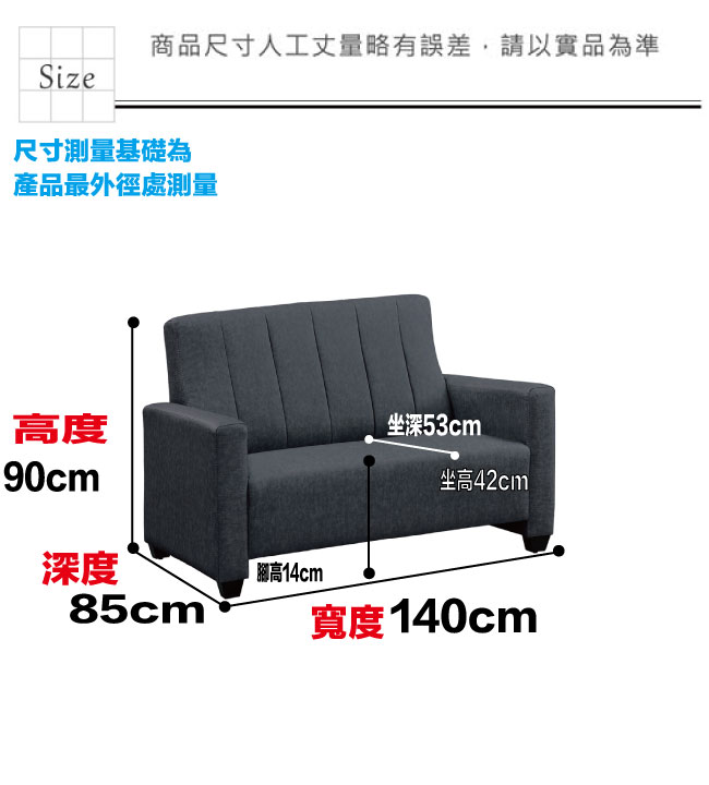 2人沙發椅尺寸:(寬)140x(深)85x(高)90/公分
