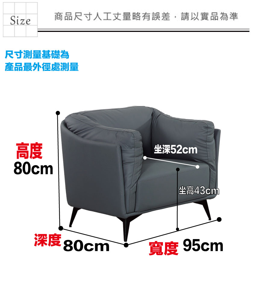 - 沙發尺寸:(寬)95x(深)80x(高)80/公分