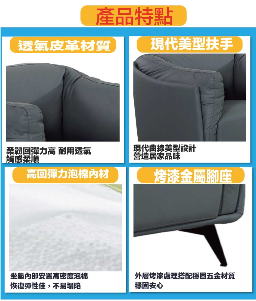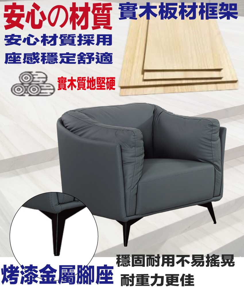 現代深灰色系+安心材質製造,使用放心+搭配居家更便利,採用內部實木板材底框+烤漆金屬腳座+透氣柔韌皮革+高回彈泡棉等安心材質製造 ,全由專人配送到家,專業安心服務,替你省下更多時間!