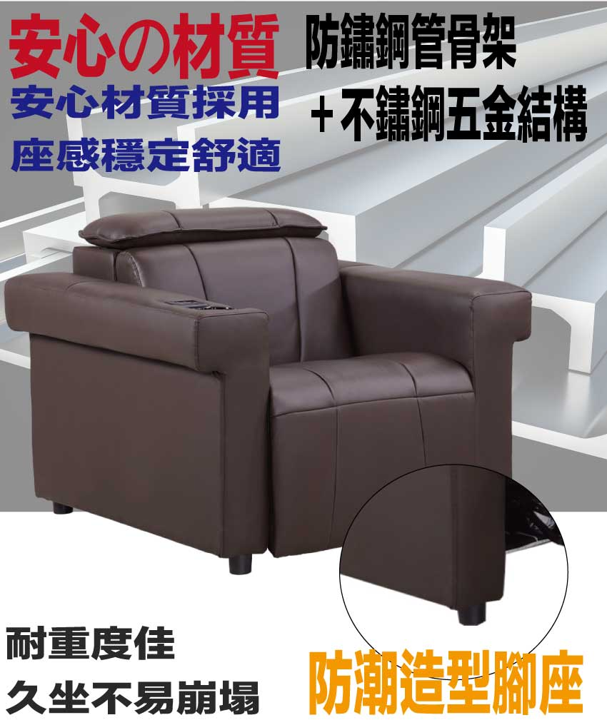 採用防鏽鋼管骨架+不鏽鋼五金結構+烤漆金屬腳座+仿真牛皮高透氣皮革+高回彈力加厚泡棉等安心材質製造