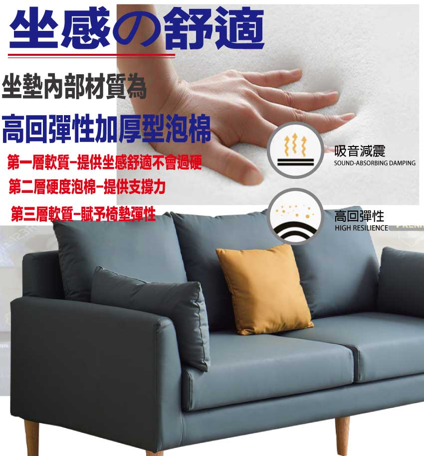 採用內部實木板材底框+防潮木紋腳座+透氣柔韌皮革+高回彈泡棉等安心材質製造
