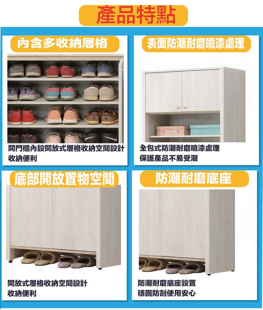 採用防蛀木心板+防潮耐磨底座+防夾手緩衝門片五金+五金滑軌結構等安心材質製造