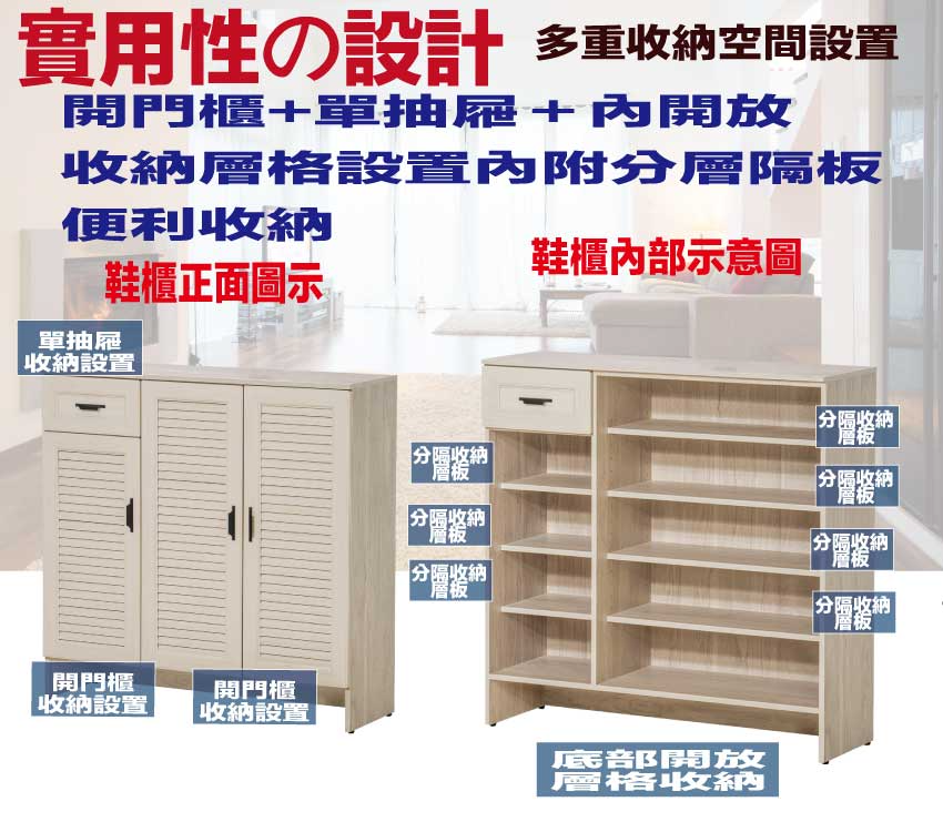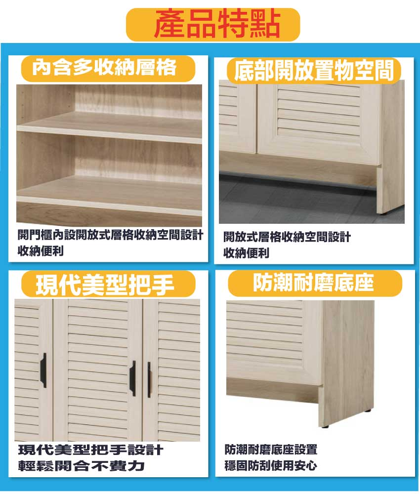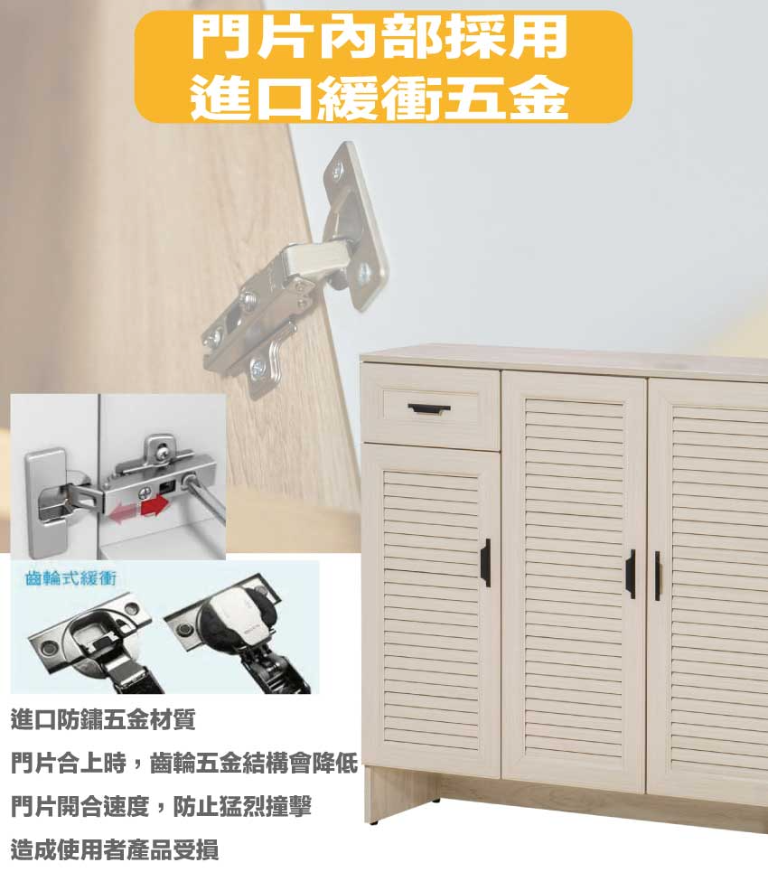 淺橡木紋色系+安心材質製造,使用放心+搭配居家更便利,採用防蛀木心板+防潮耐磨底座+五金滑軌結構+鋁製門片(正面)等安心材質製造 ,外層採用防潮耐磨噴漆處理搭配採用開門櫃+單抽屜+內開放層格等收納空間設計,全由專人配送到家,專業安心服務,替你省下更多時間!