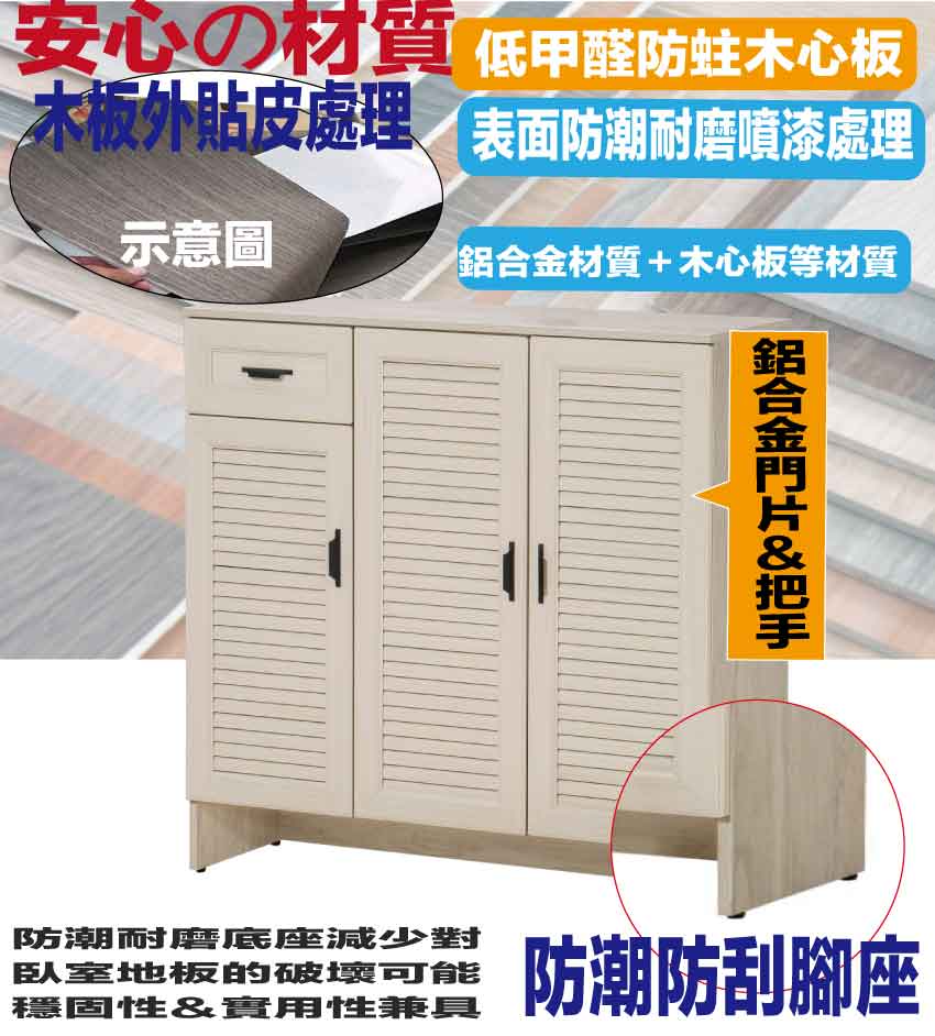 採用防蛀木心板+防潮耐磨底座+五金滑軌結構+鋁製門片(正面)等安心材質製造