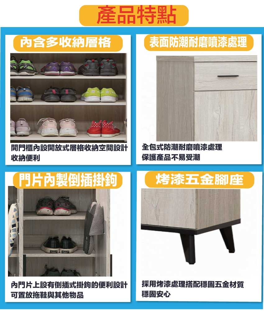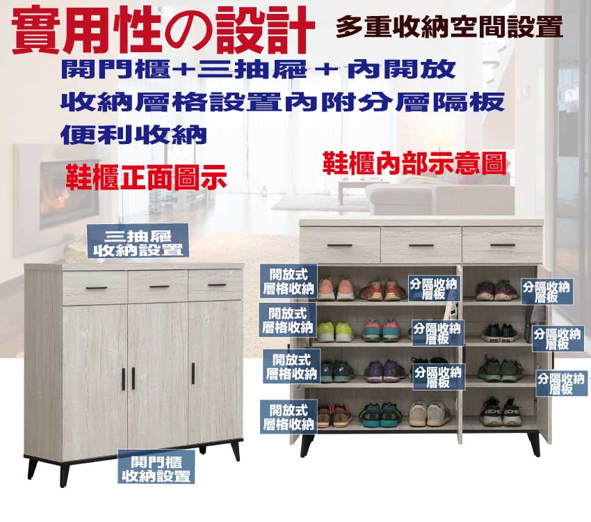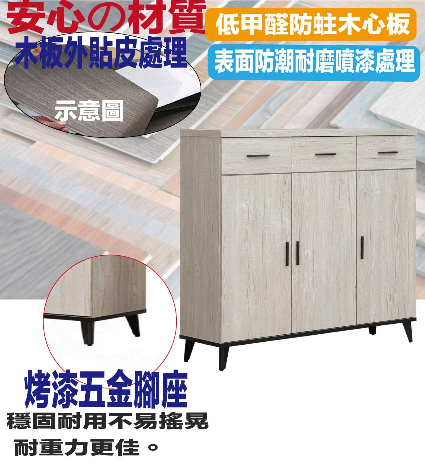 淺橡木紋色系+安心材質製造,使用放心+搭配居家更便利,採用防蛀木心板+烤漆五金腳座+五金滑軌結構+防夾手緩衝門片五金等安心材質製造 ,外層採用防潮耐磨噴漆處理搭配採用開門櫃+三抽屜+內開放層格等收納空間設計,全由專人配送到家,專業安心服務,替你省下更多時間!