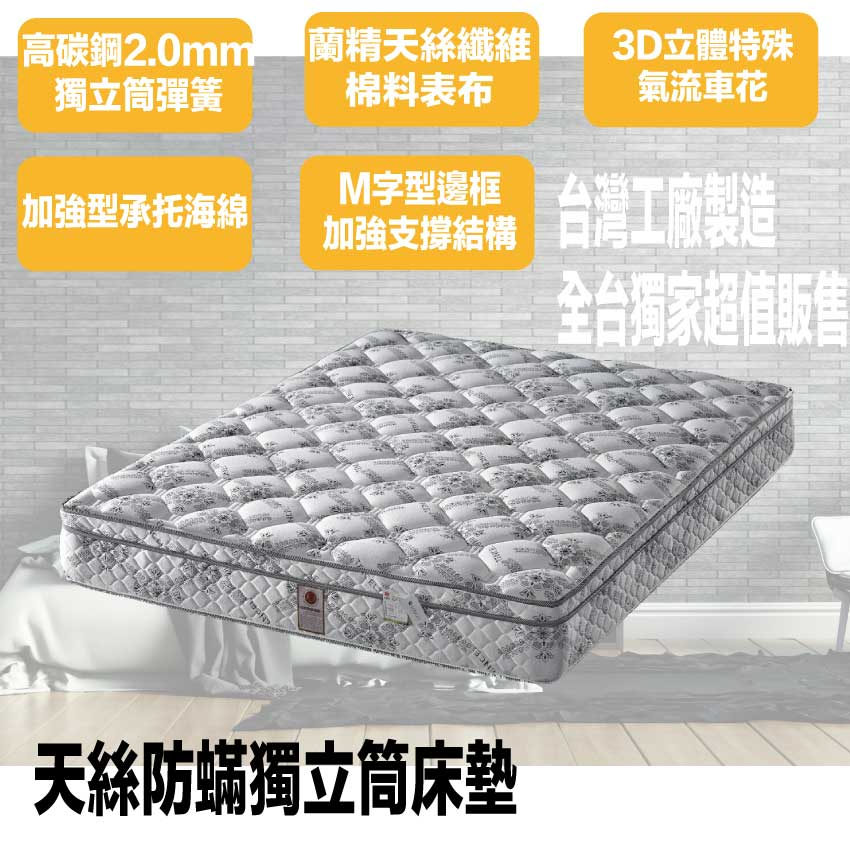 AI-01899 艾柏 3D天絲防蟎獨立筒床墊-3.5尺單人