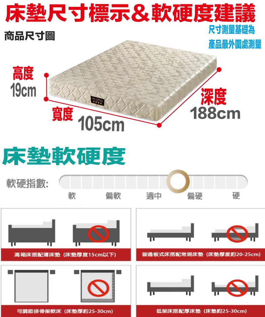 AI-01905 艾柏 防蟎緹花布&蓆面彈簧床墊-3.5尺單人