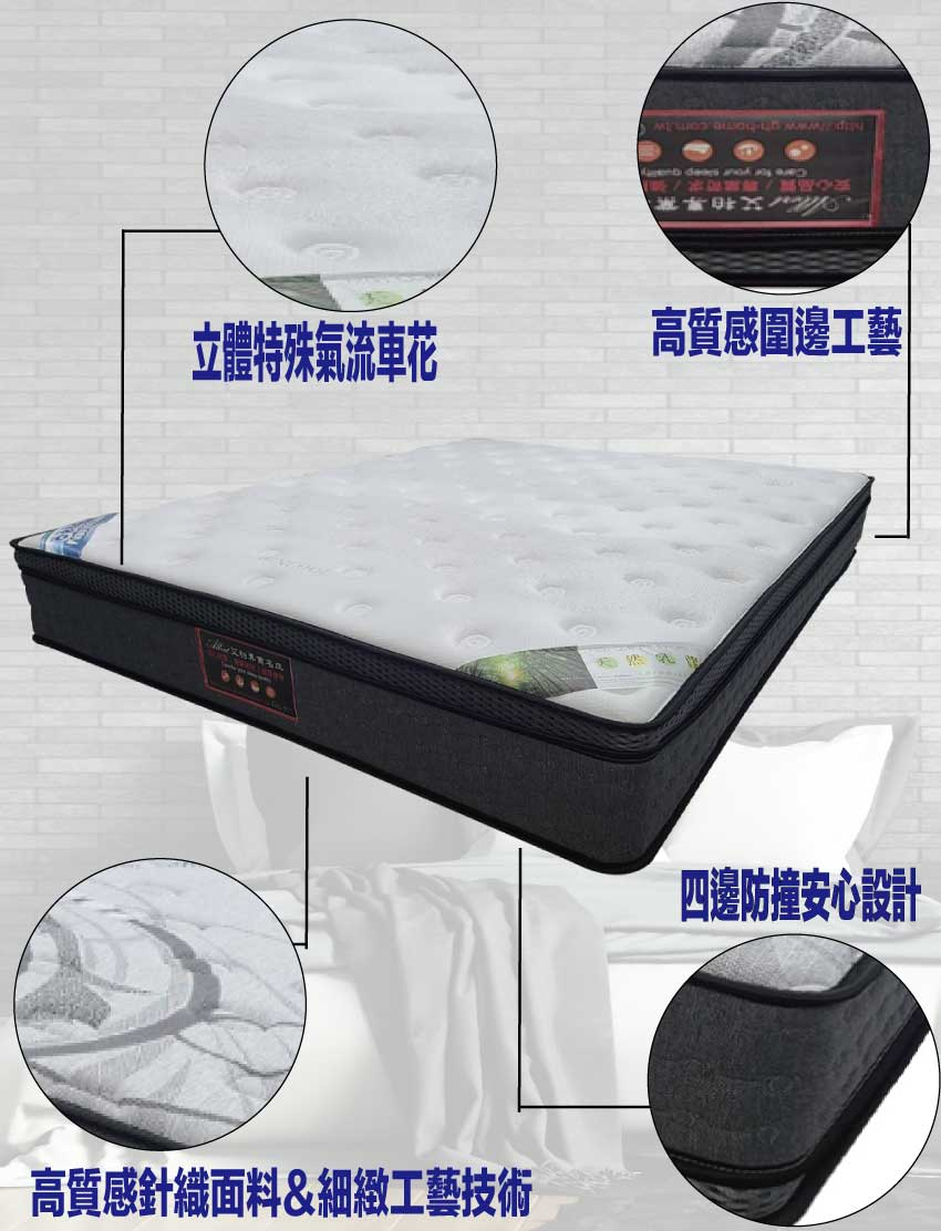 AI-03005 艾柏 雙面石墨烯&涼感紗乳膠獨立筒床墊-6尺雙人加大