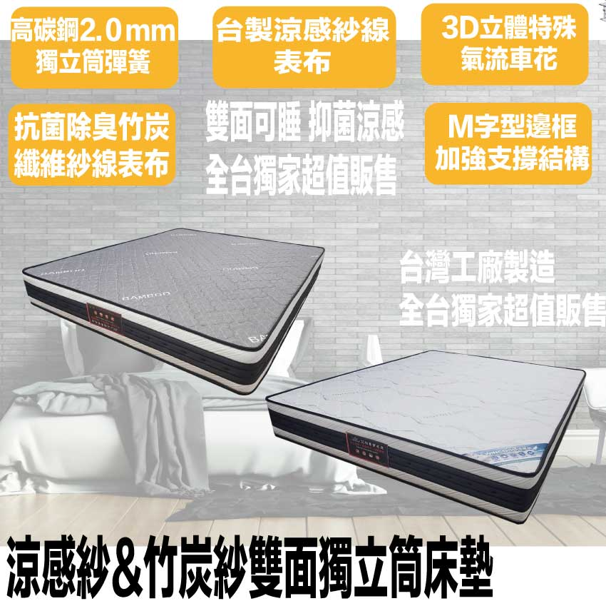 AI-03012 艾柏 雙面竹炭纖維&涼感紗獨立筒床墊-3.5尺單人