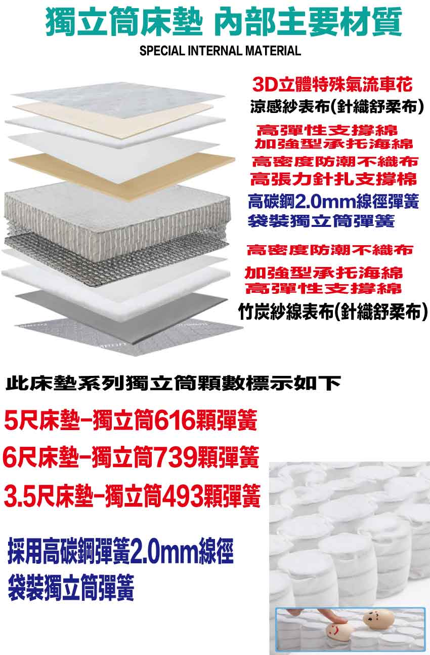 AI-03013 艾柏 雙面竹炭纖維&涼感紗獨立筒床墊-5尺雙人