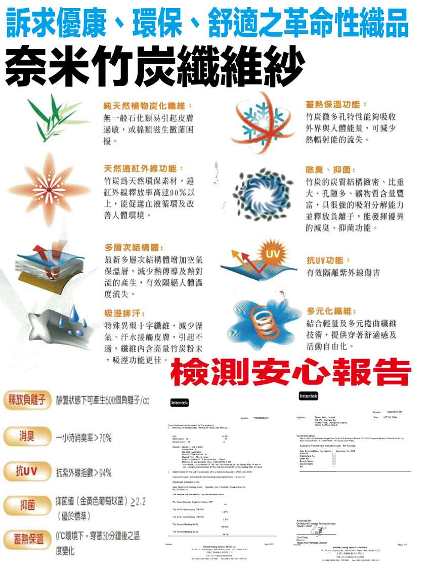 竹炭纖維紗+透氣涼感紗表布