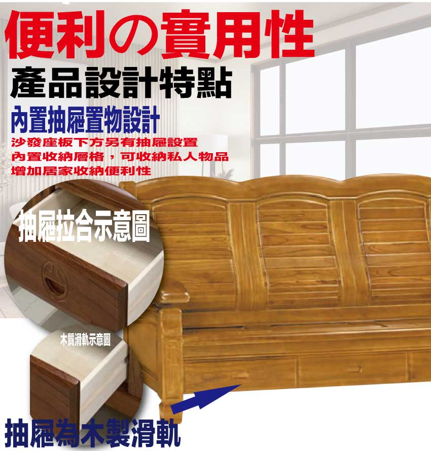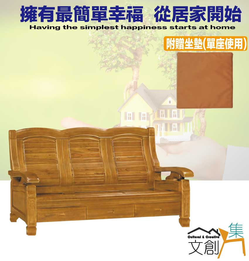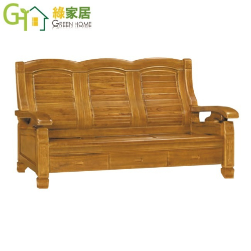 - 產品名稱:【綠家居】海灣樟木色三人座柚木實木椅(底部抽屜可收納)