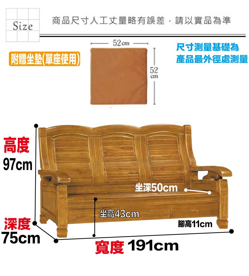 尺寸:(寬)191x(深)75x(高)97/公分