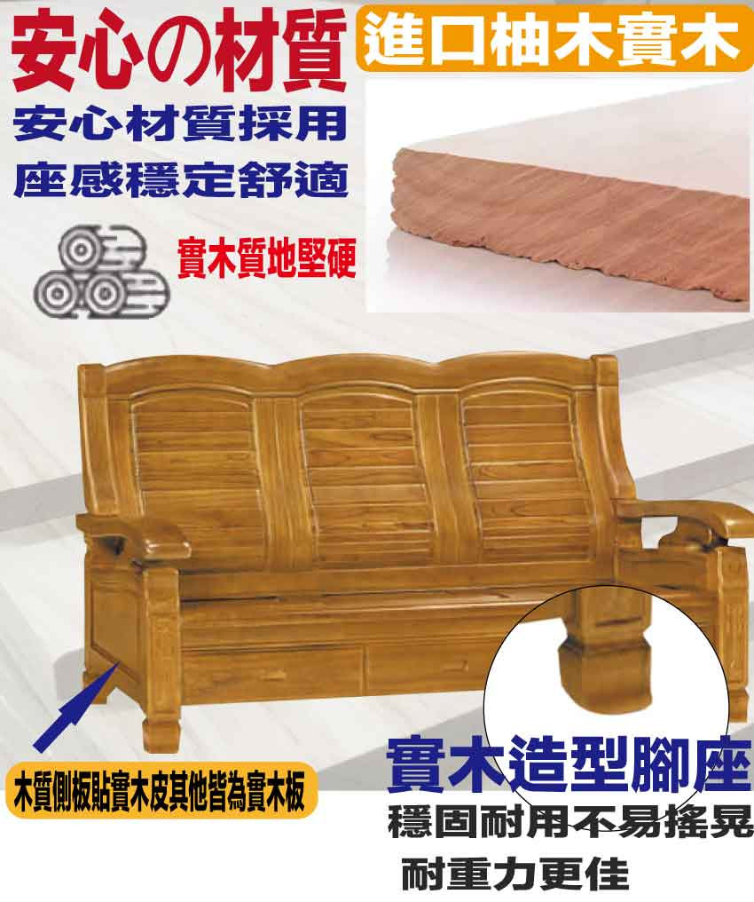 採用進口柚木實木材質+側板木心板貼實木皮等安心材質製造