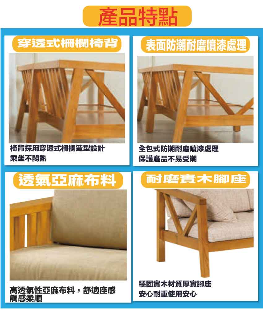 - 產品名稱:【綠家居】優可柚木色亞麻布四人座實木沙發椅
