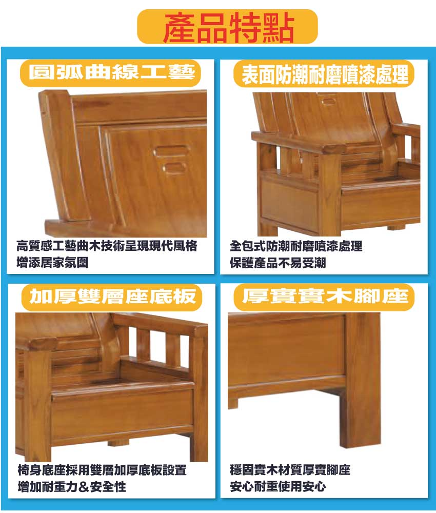 【綠家居】艾羅柚木色三人座實木椅 柚木紋色系+現代典雅風格+安心材質製造,使用放心+搭配居家更便利,採用進口金鈴木實木材質+側板木心板貼實木皮等安心材質製造 ,全由專人配送到家,專業安心服務,替你省下更多時間!