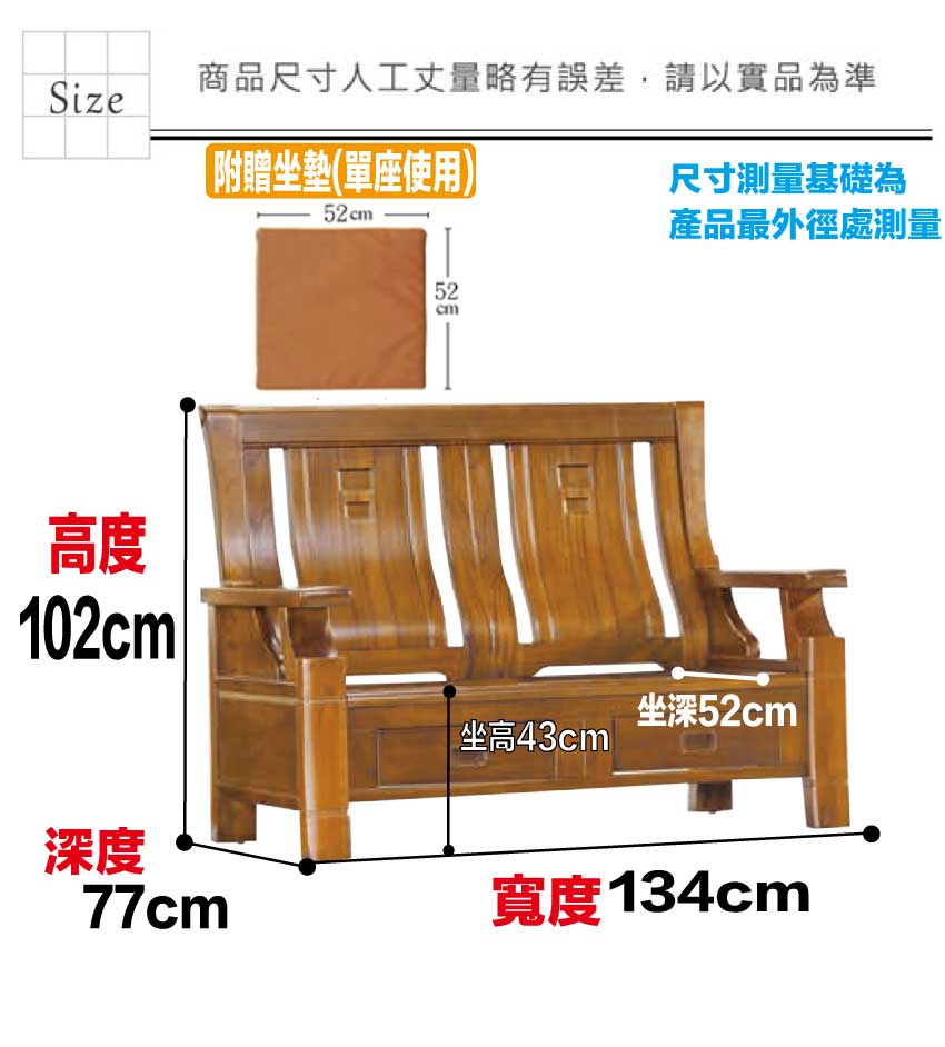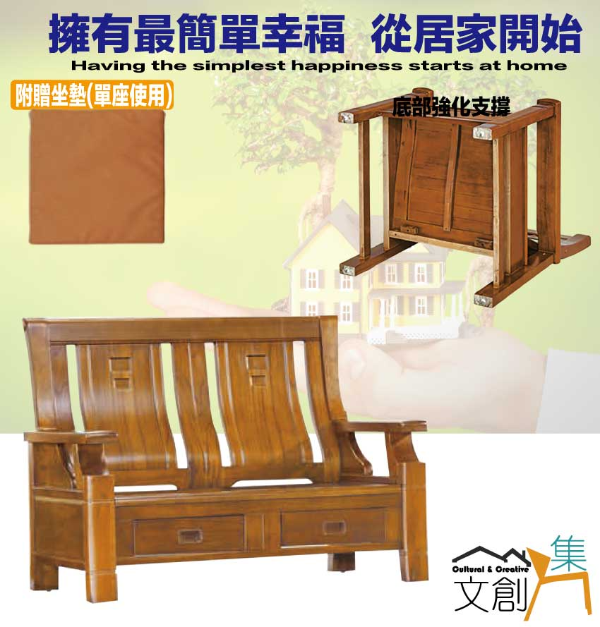 - 產品名稱:【綠家居】歌里柚木色二人座實木椅(底部抽屜可收納)