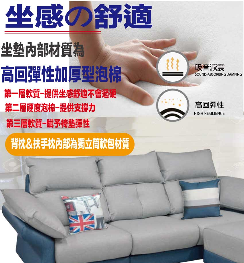 此組L型沙發組合另有坐墊可前後滑移功能設計,讓您可更舒適的躺臥使用