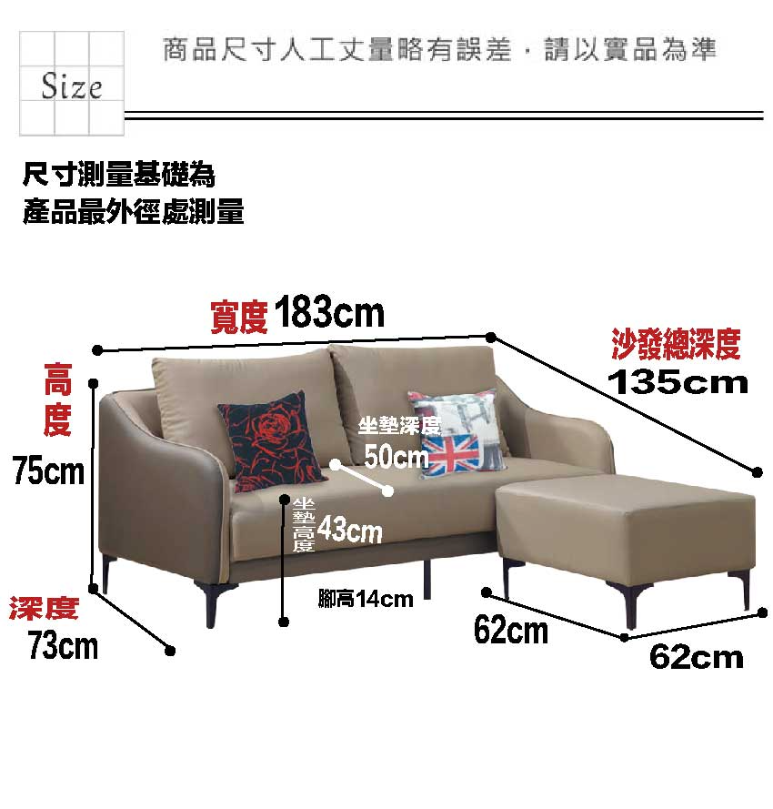 - 尺寸:(寬)183x(深)135x(高)75/公分