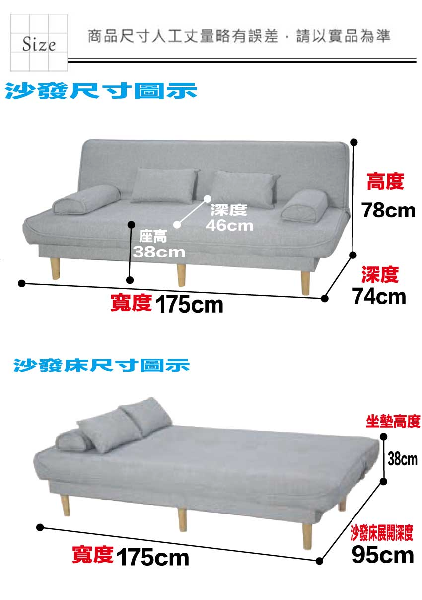 沙發床尺寸:(寬)175x(深)95x(座高)38/公分