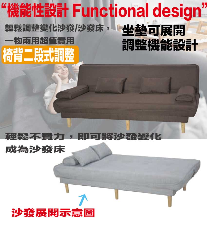 沙發將坐墊展開後即可變化為沙發床使用,實用機能性設計打造居家便利性