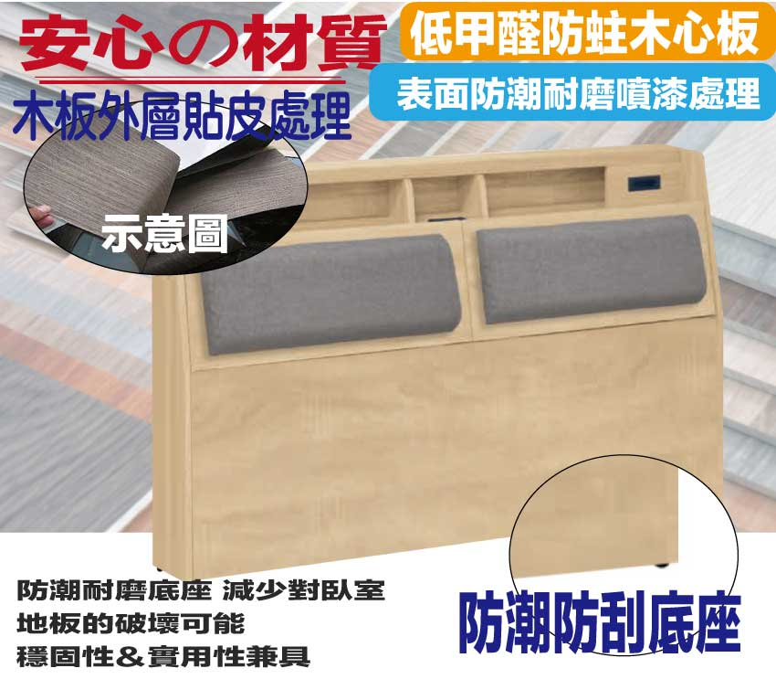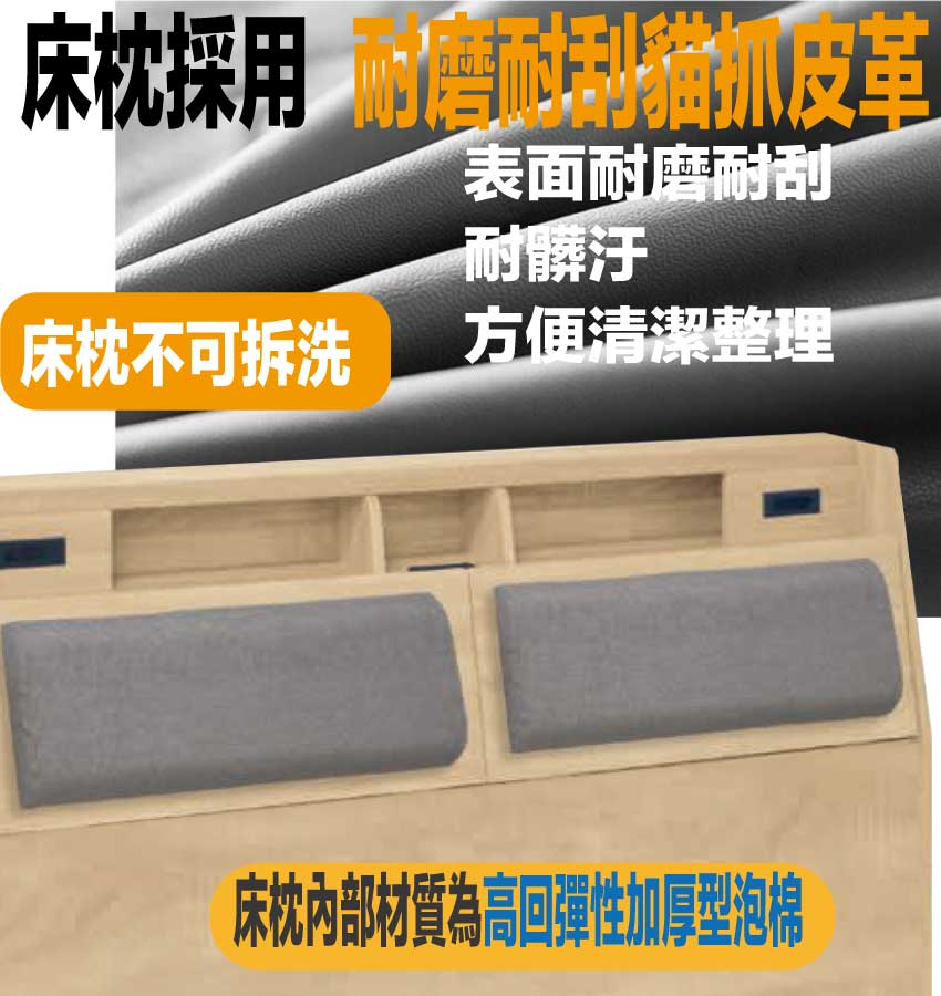 【綠家居】米倫5尺雙人貓抓皮革床頭箱(不含床底+不含床墊) 原橡木紋色系+安心材質製造,使用放心+搭配居家更便利,採用防蛀木心板+防潮耐磨底座+耐磨貓抓皮革+高回彈泡棉等安心材質製造 ,外層採用防潮耐磨噴漆處理搭配床頭採用可掀式床枕板+內&外收納空間+便利插座等收納空間設計,全由專人配送到家,專業安心服務,替你省下更多時間!