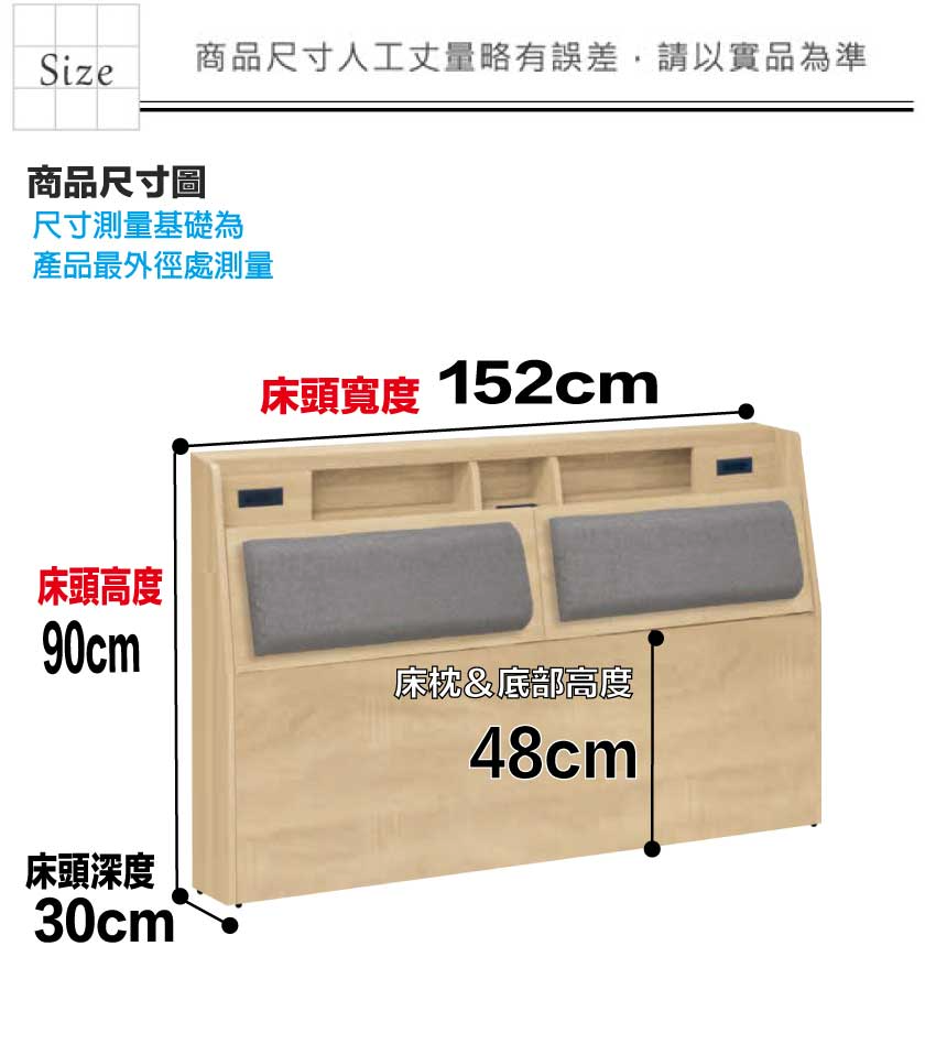 - 床頭尺寸:(寬)152x(深)30x(高)90/公分