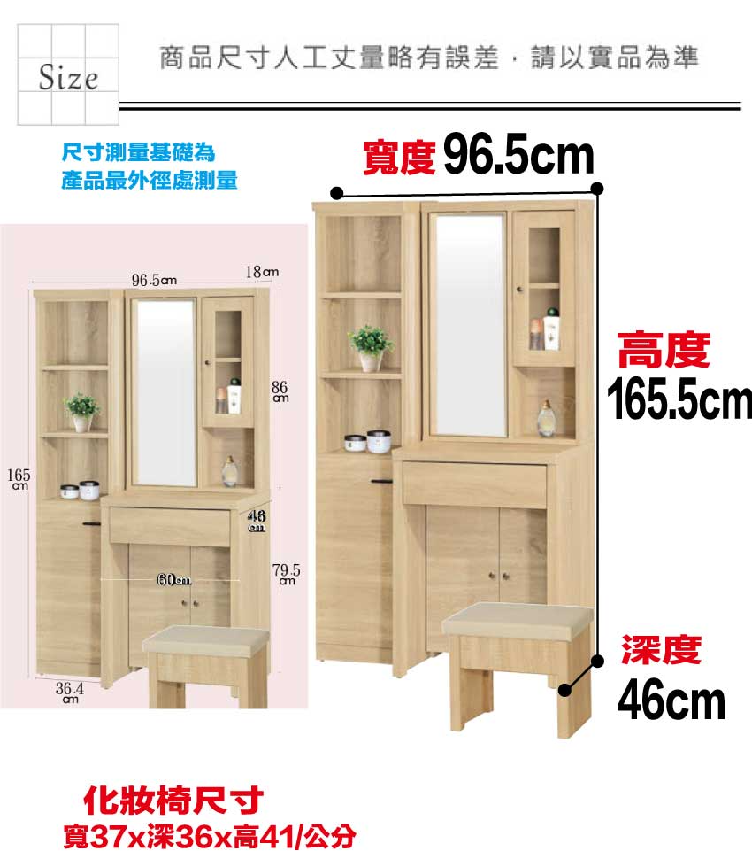 - 尺寸:(寬)96.5x(深)46x(高)165.5/公分