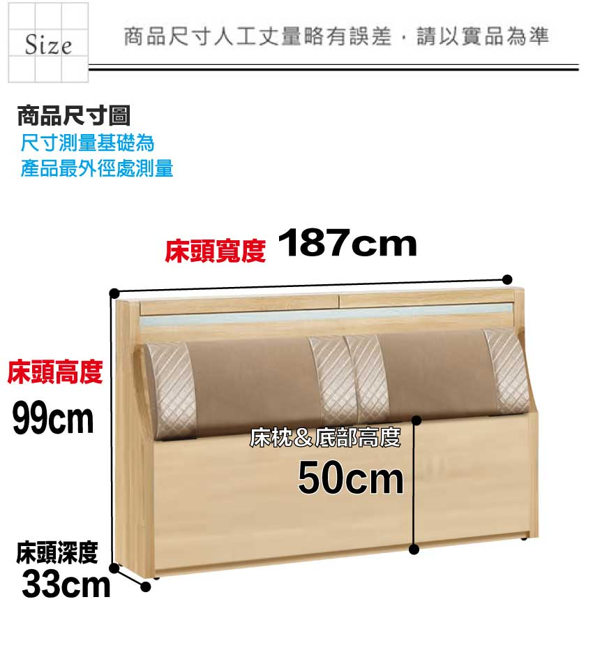 - 床頭尺寸:(寬)187x(深)33x(高)99/公分