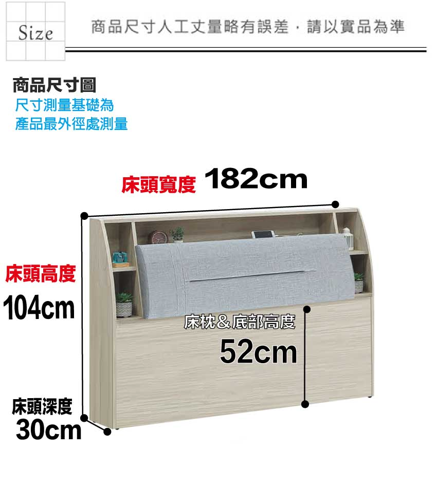 - 床頭尺寸:(寬)182x(深)30x(高)104/公分