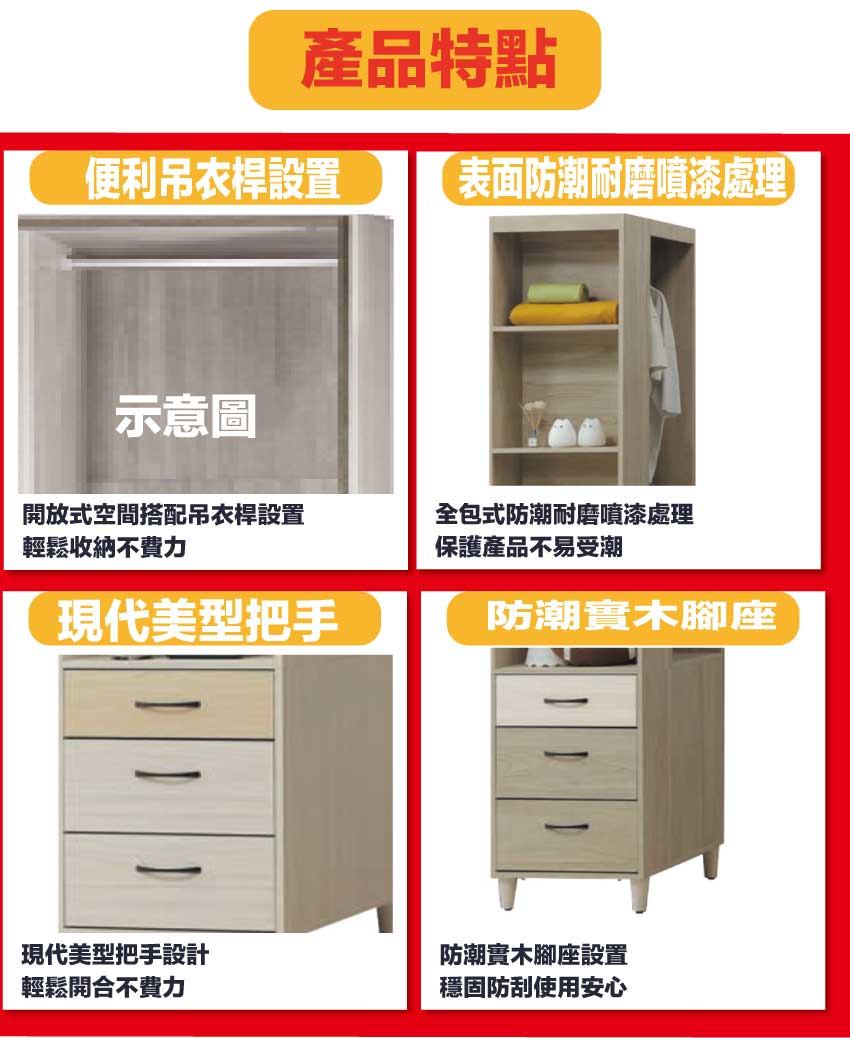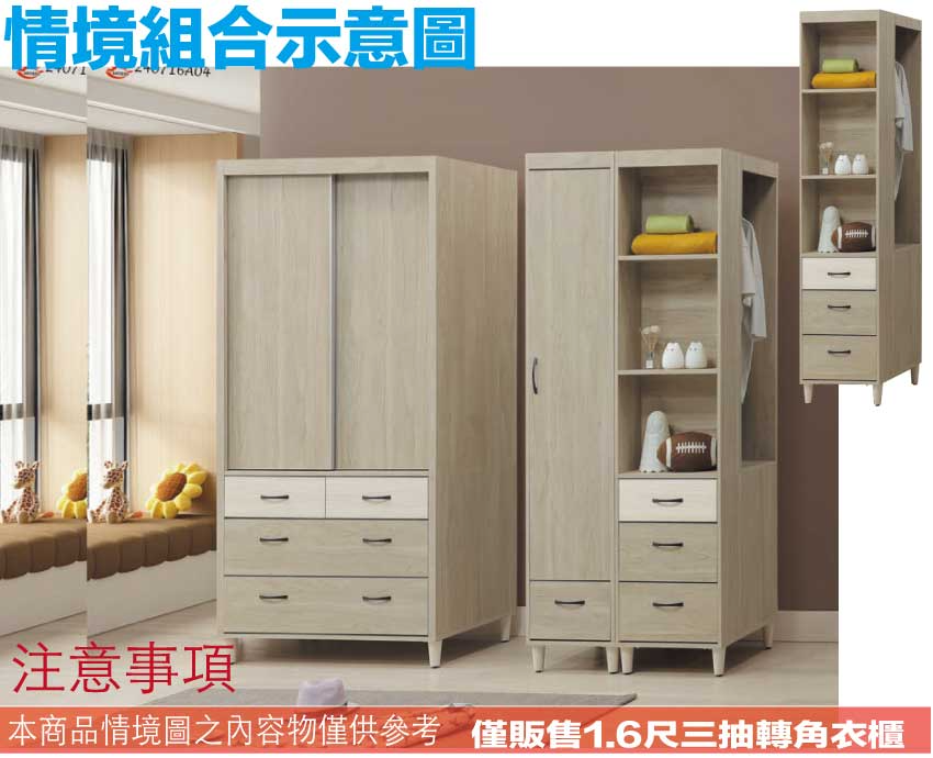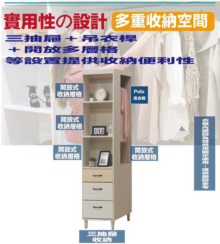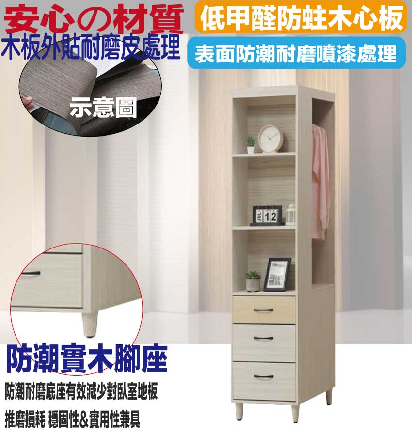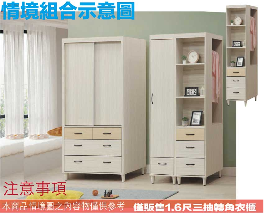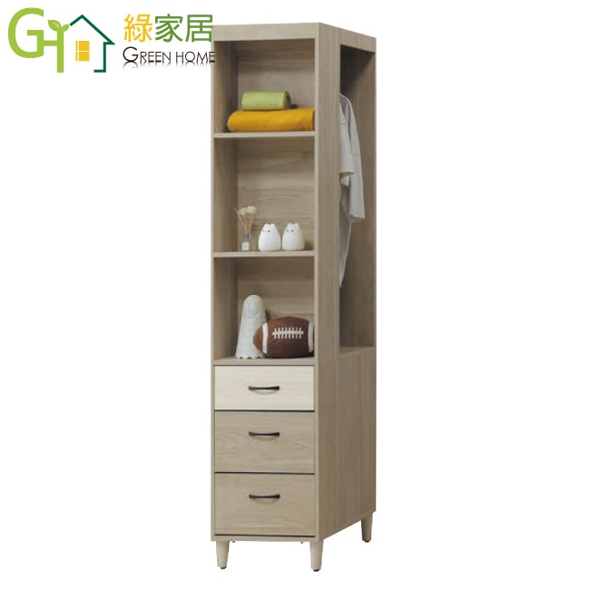 【綠家居】米賽倫1.6尺三抽開放轉角衣櫃(二色可選) 二色可選+安心材質製造,使用放心+搭配居家更便利,採用防蛀木心板+防潮實木腳座+五金滑軌結構等安心材質製造 ,外層採用防潮耐磨噴漆處理搭配採用吊衣桿+三抽屜+開放層格等收納空間設計,全由專人配送到家,專業安心服務,替你省下更多時間!