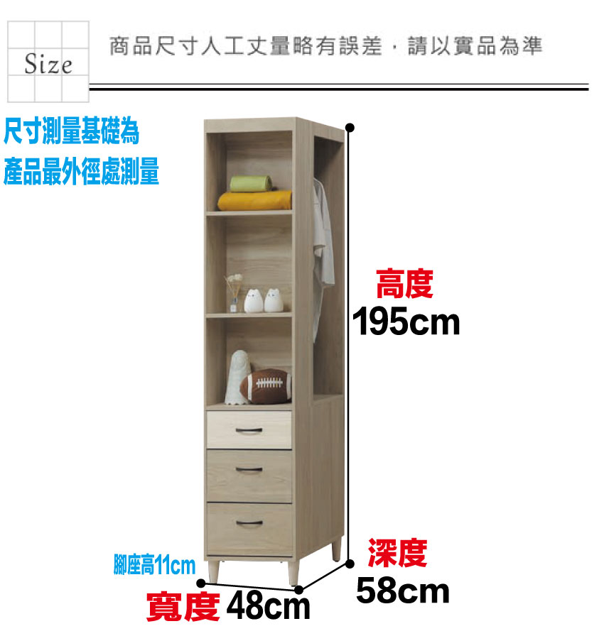 - 尺寸:(寬)48x(深)58x(高)195/公分