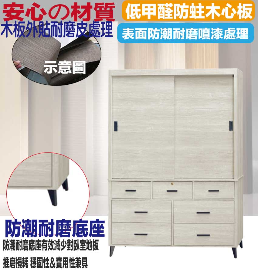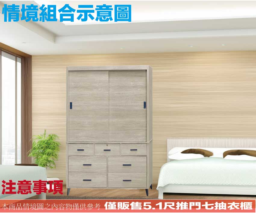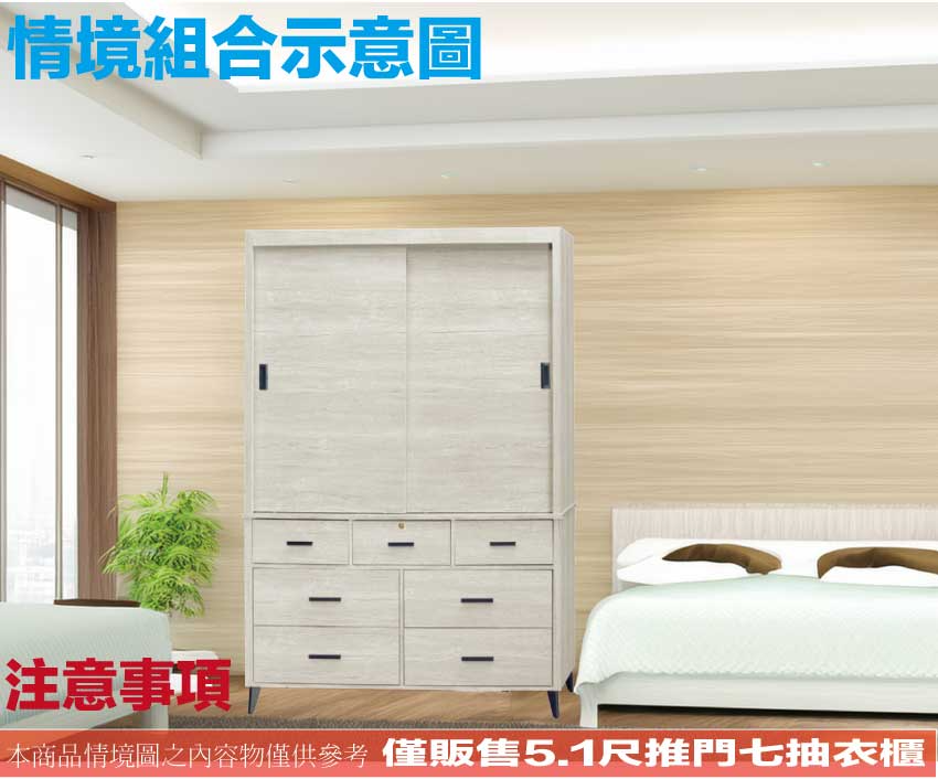 【綠家居】賽斯5.1尺推門七抽衣櫃(二色可選) 二色可選+安心材質製造,使用放心+搭配居家更便利,採用防蛀木心板+防潮耐磨底座+五金滑軌結構等安心材質製造 ,外層採用防潮耐磨噴漆處理搭配採用推門櫃+吊衣桿+七抽屜+內開放層格等收納空間設計,全由專人配送到家,專業安心服務,替你省下更多時間!