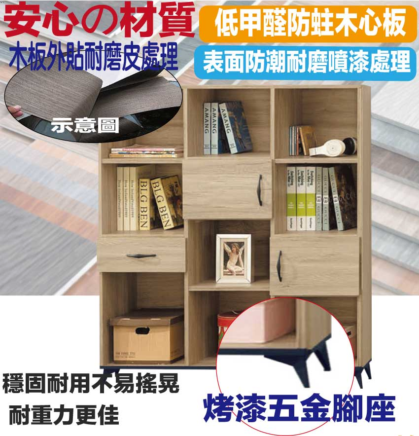 【綠家居】伊爾4尺二門單抽書櫃 橡木紋色系+安心材質製造,使用放心+搭配居家更便利,採用防蛀木心板+烤漆五金腳座等安心材質製造 ,外層採用防潮耐磨噴漆處理搭配採用開門櫃+單抽屜+開放層格等收納空間設計,全由專人配送到家,專業安心服務,替你省下更多時間!