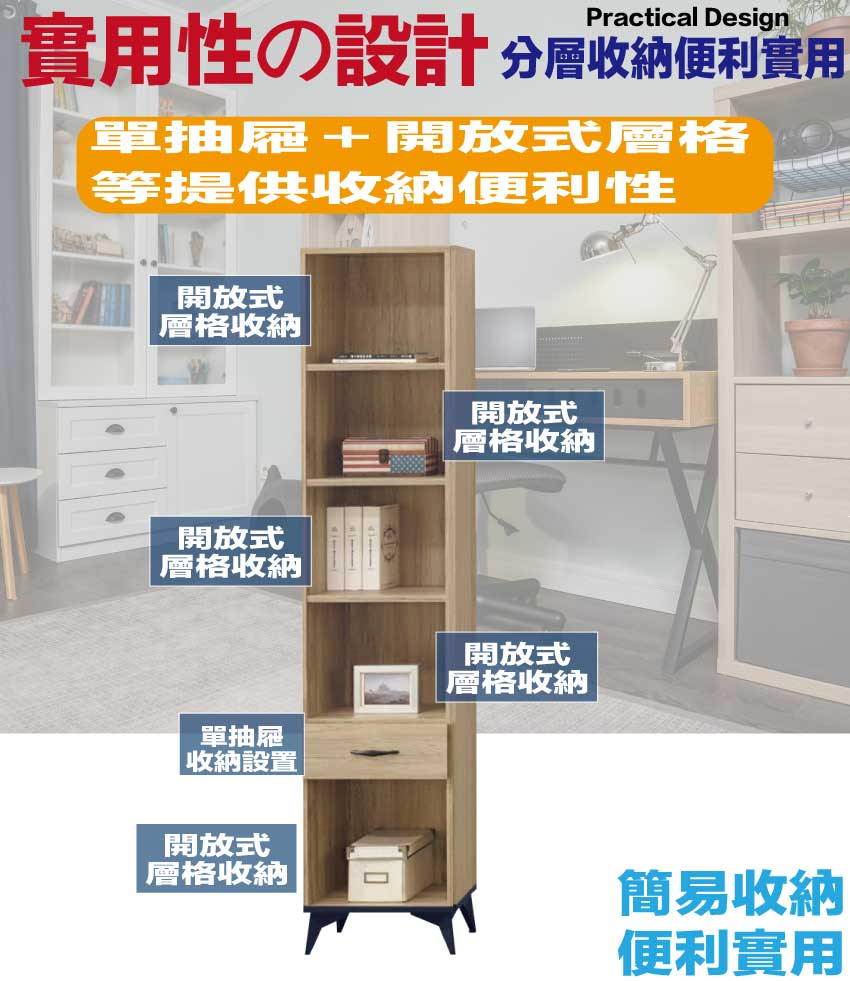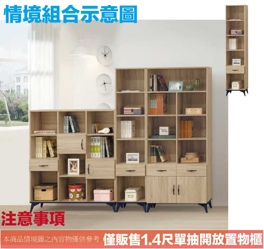 【綠家居】伊爾1.4尺單抽開放書櫃 橡木紋色系+安心材質製造,使用放心+搭配居家更便利,採用防蛀木心板+烤漆五金腳座等安心材質製造 ,外層採用防潮耐磨噴漆處理搭配採用單抽屜+開放層格等收納空間設計,全由專人配送到家,專業安心服務,替你省下更多時間!