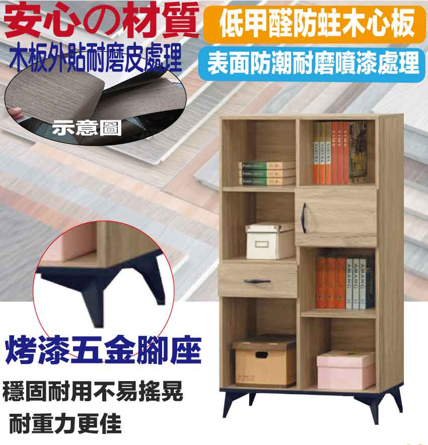 【綠家居】伊爾2.6尺單門單抽書櫃 橡木紋色系+安心材質製造,使用放心+搭配居家更便利,採用防蛀木心板+烤漆五金腳座等安心材質製造 ,外層採用防潮耐磨噴漆處理搭配採用開門櫃+單抽屜+開放層格等收納空間設計,全由專人配送到家,專業安心服務,替你省下更多時間!