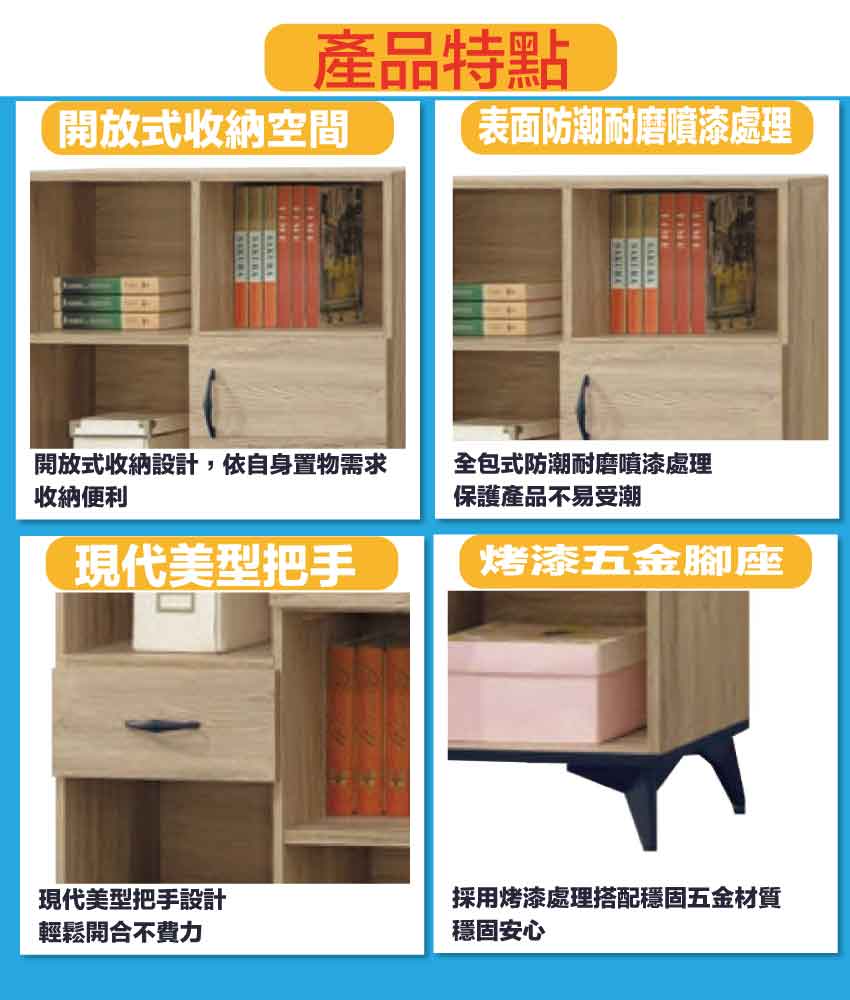 橡木紋色系+安心材質製造,使用放心+搭配居家更便利