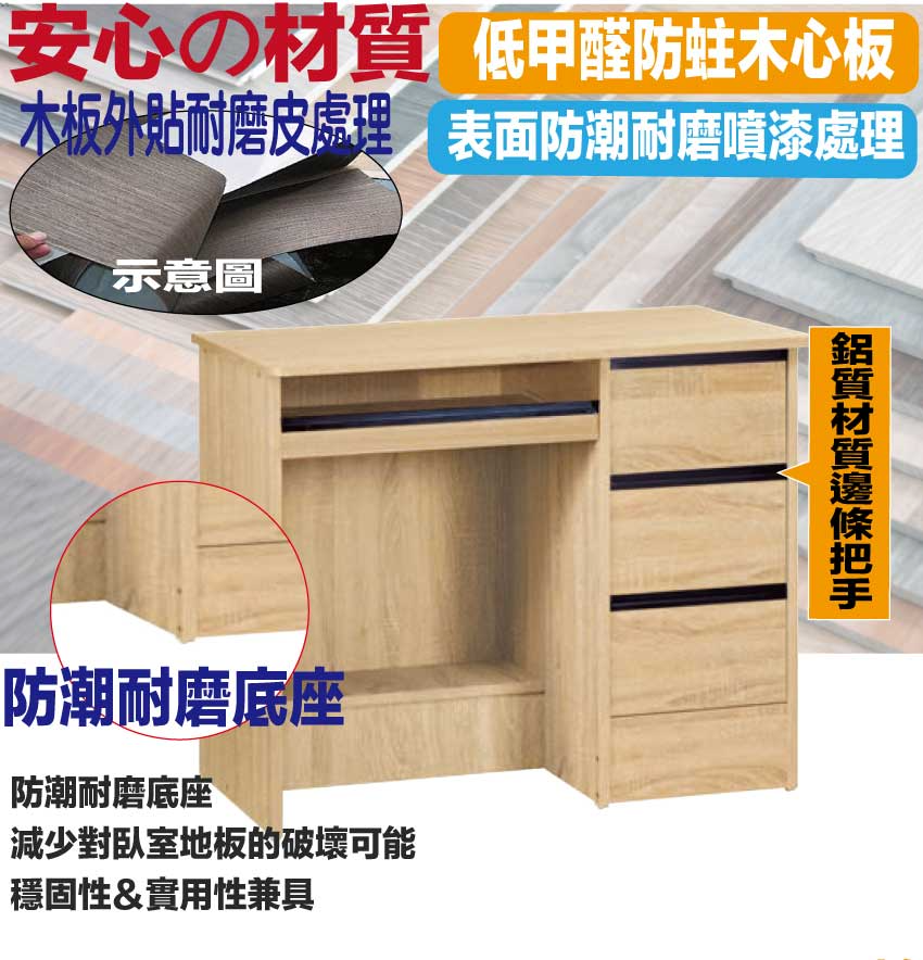 採用防蛀木心板+防潮耐磨底座+五金滑軌結構等安心材質製造