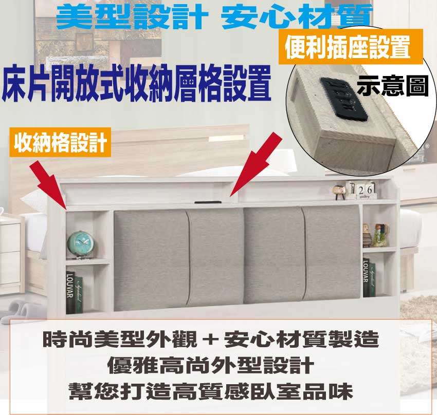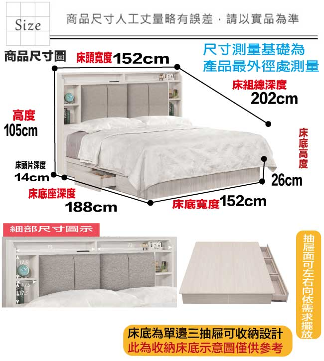床頭尺寸:(寬)152x(深)14x(高)105/公分