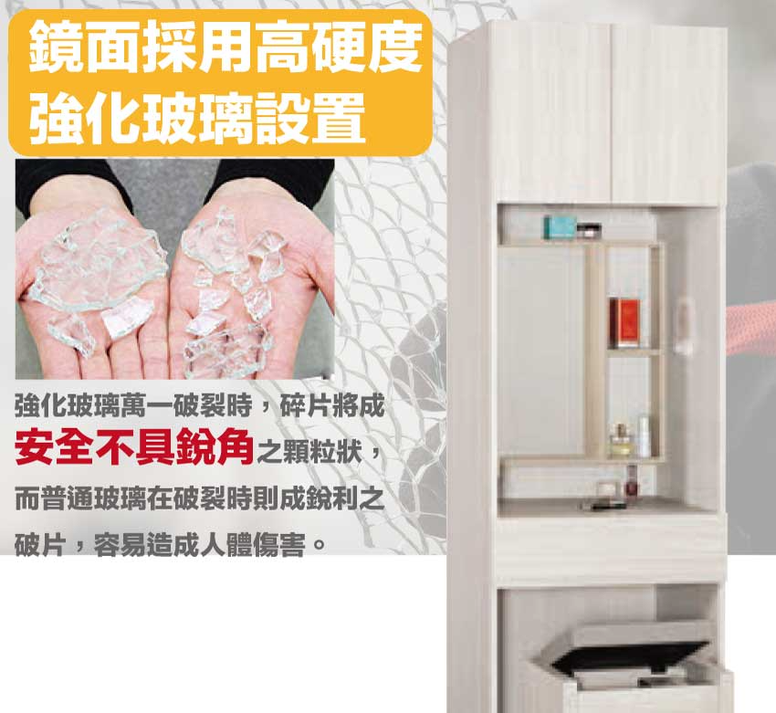 ◆材質: 材質:防蛀木心板+防潮耐磨底座+五金滑軌結構+強化玻璃鏡面+防夾手緩衝門片五金
