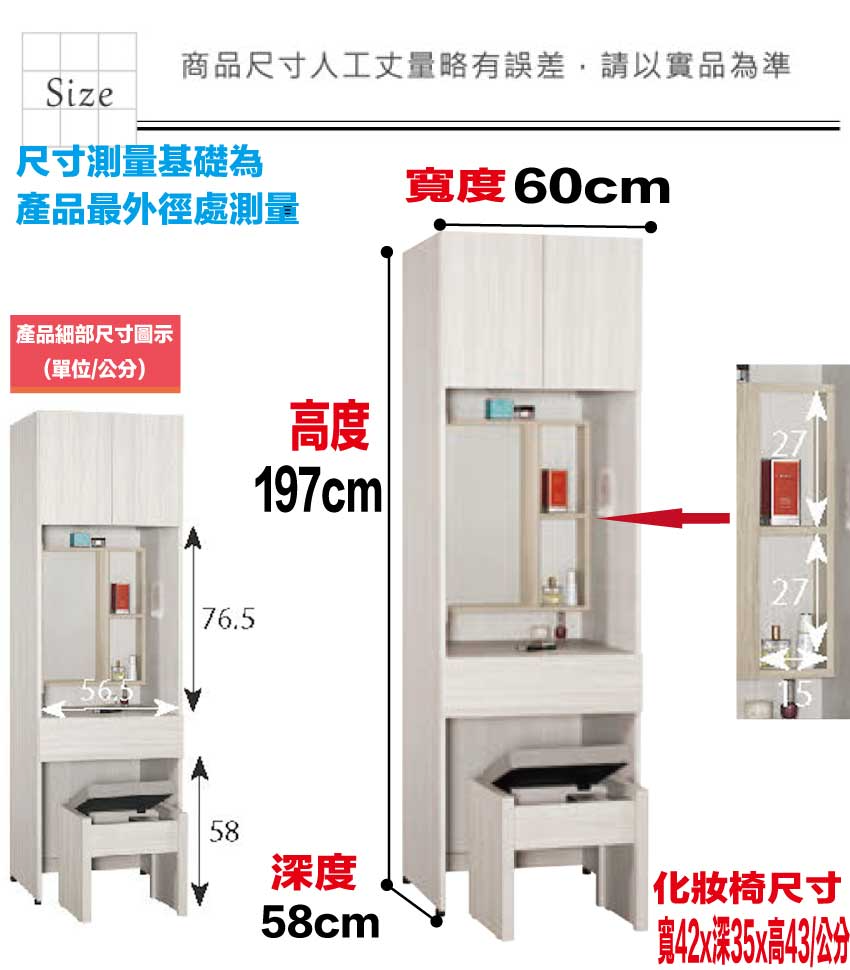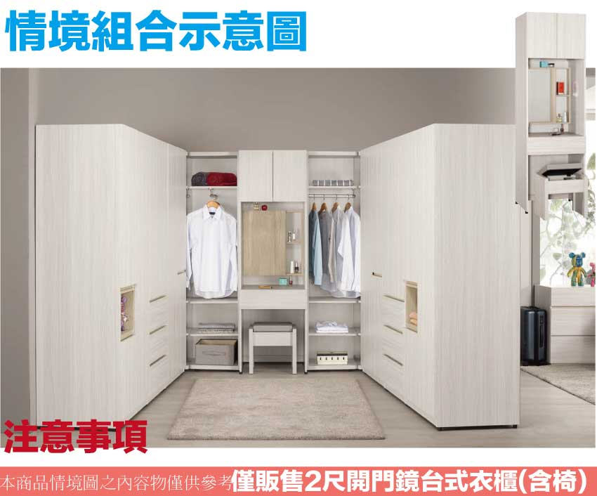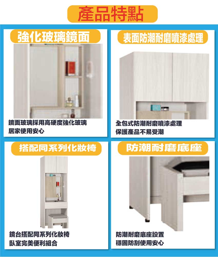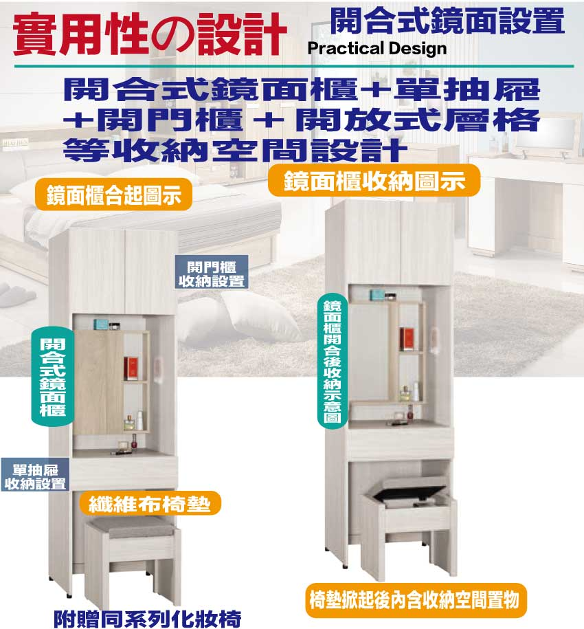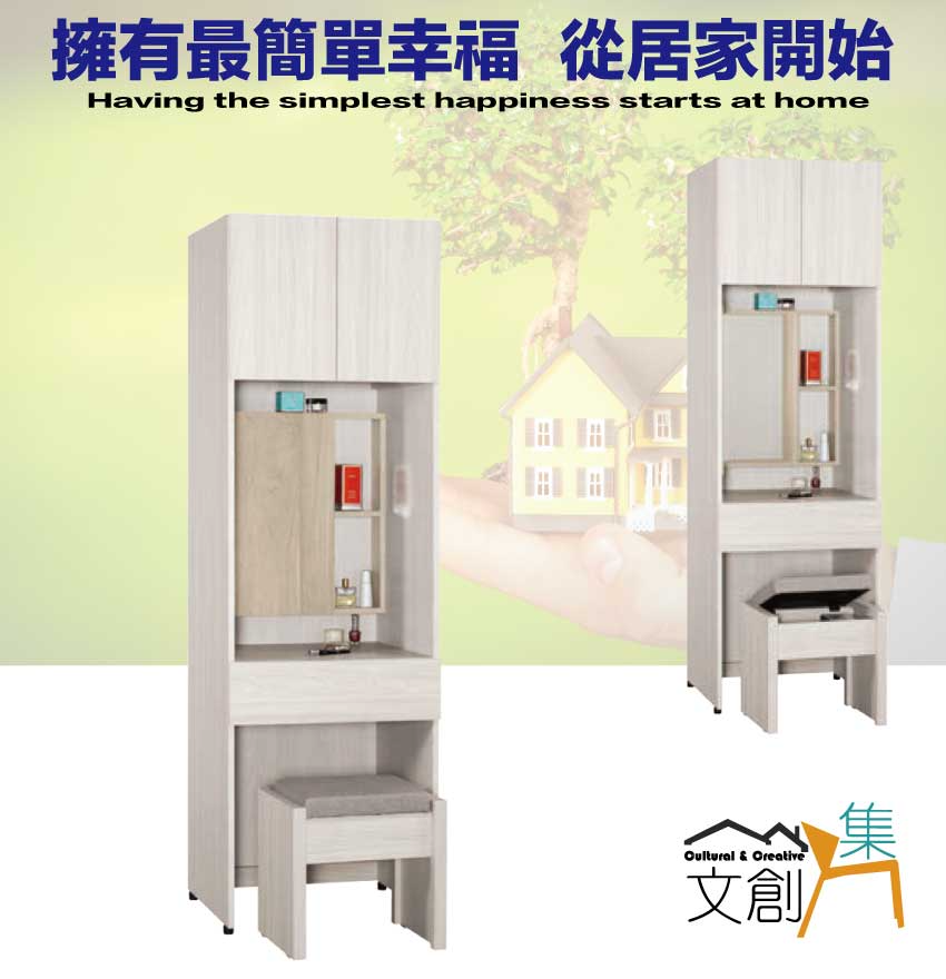 - ◆產品名稱:【綠家居】寶亞2尺開合鏡面衣櫃式鏡台/化妝台組合(含化妝椅)