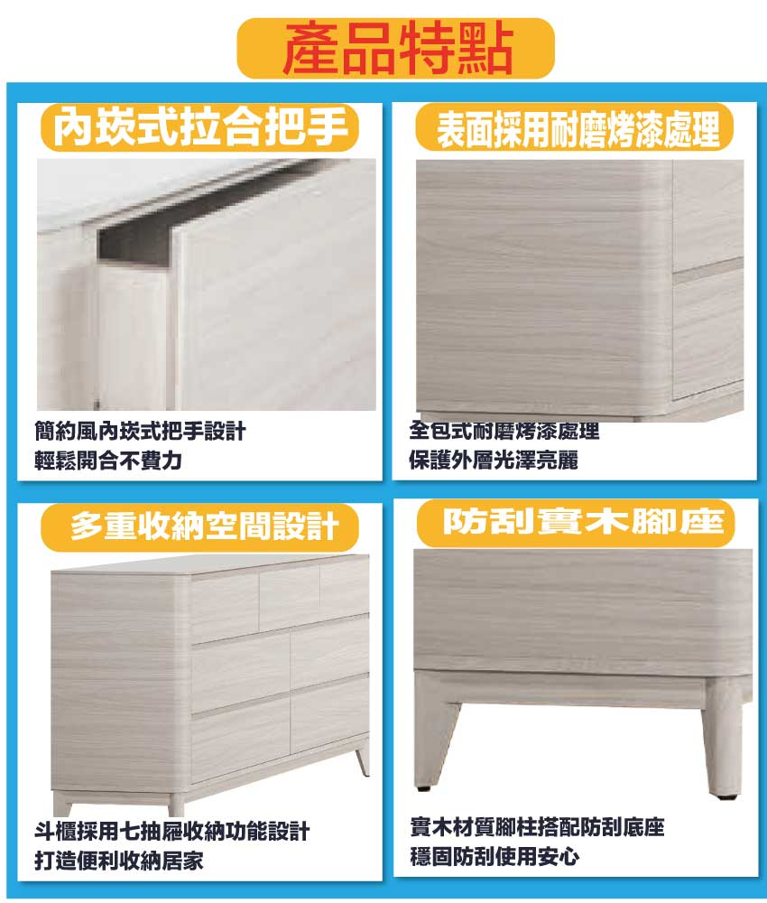 - ◆產品名稱:【綠家居】朵利5尺岩板七抽斗櫃