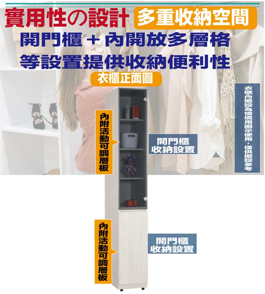 - ◆產品名稱:【綠家居】丹尼1尺灰玻二門高衣櫃/側邊櫃
