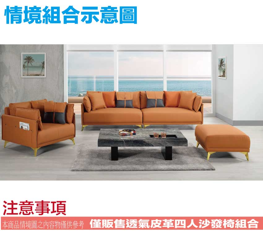 產品名稱:【綠家居】卡德透氣皮革四人座沙發椅