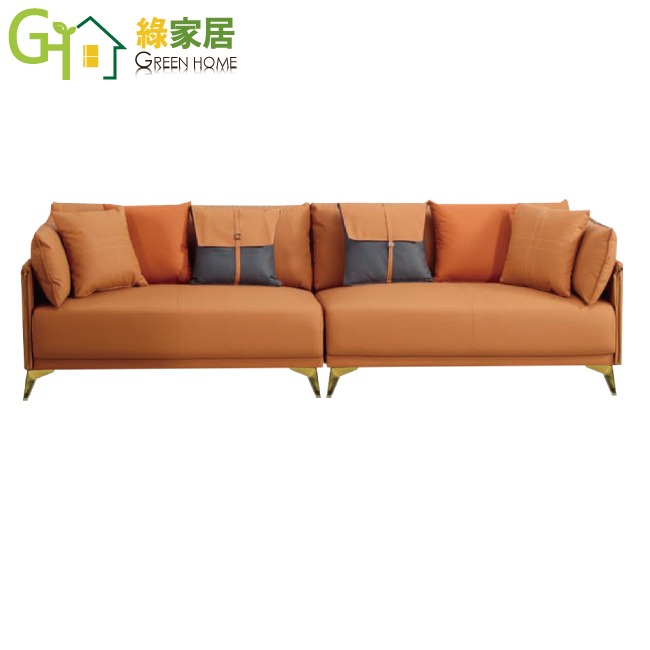 【綠家居】卡德透氣皮革四人座沙發椅 咖啡橘色系+現代美型外觀+安心材質製造,就是這種頂級質感的設計,能輕鬆地融入各種空間風格,採用內部實木板材框架+烤漆金屬腳座+透氣柔韌皮革+高回彈力加厚泡棉等安心材質製造,品質安心有保障,現在購買專人送到府服務,免組裝+免運費,讓你省時省力省運費!