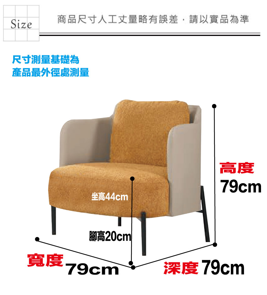 產品名稱:【綠家居】羅爾雙色棉麻布&皮革單人座沙發椅(二色可選)