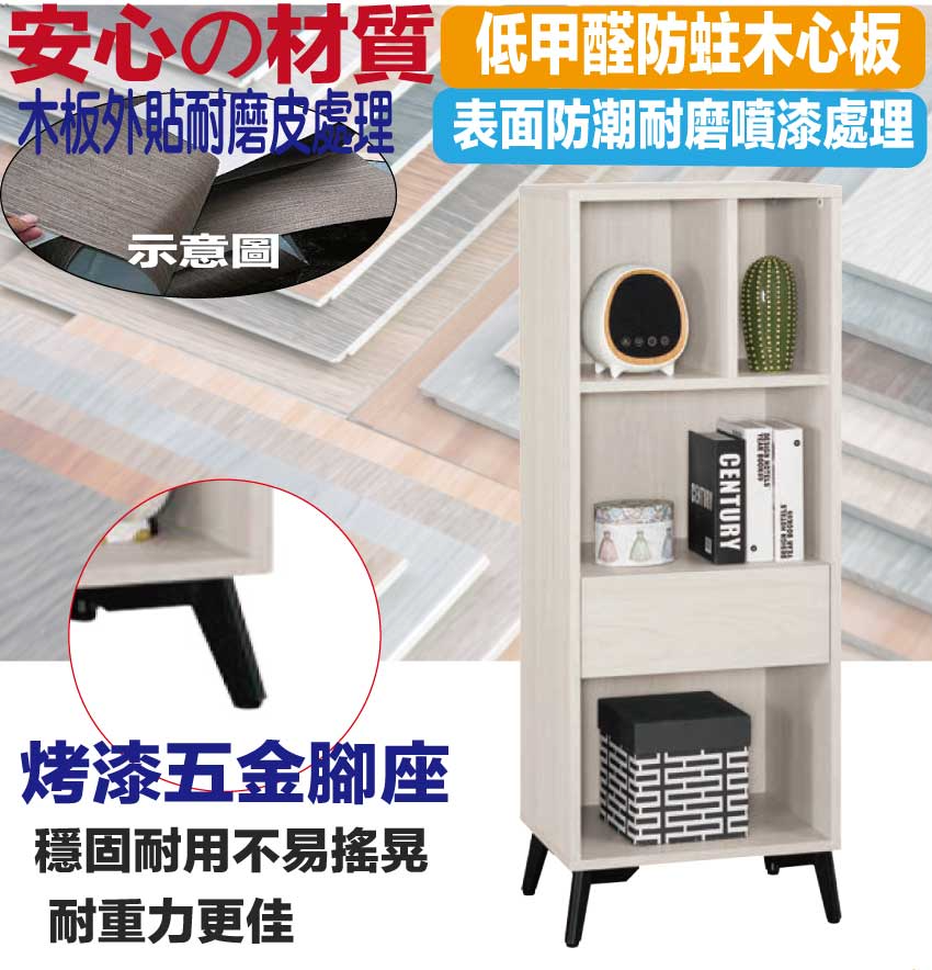 【綠家居】丹尼1.5尺單抽半開放展示櫃 木紋雙色系+安心材質製造,使用放心+搭配居家更便利,採用防蛀木心板+烤漆五金腳座+五金滑軌結構等安心材質製造 ,外層採用防潮耐磨噴漆處理搭配採用單抽屜+開放層格等收納空間設計,全由專人配送到家,專業安心服務,替你省下更多時間!